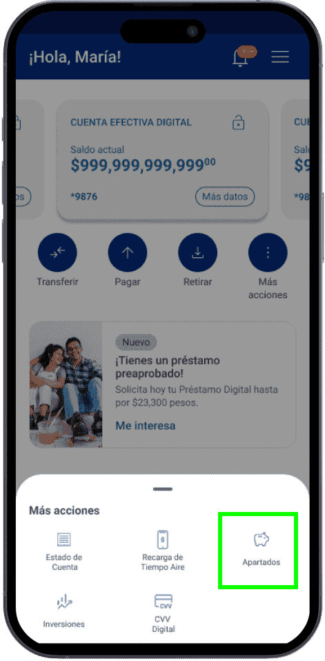 Ingresa a tu App BanCoppel y selecciona Más acciones