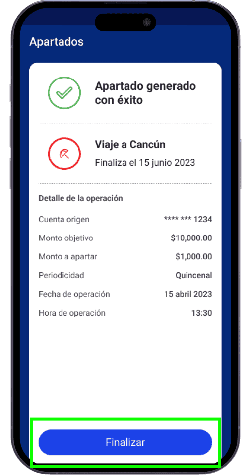 ¡Tu Apartado fue creado! Presiona en Finalizar