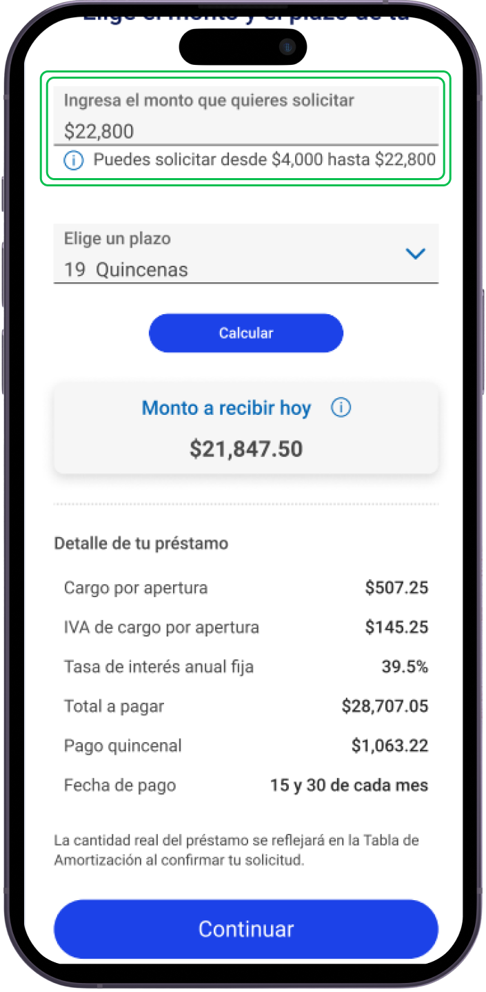 Elige el monto y plazo que deseas solicitar